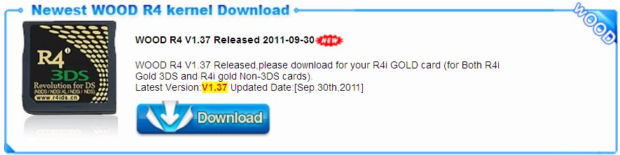 Bonne nouvelle, suivez les dernier mise à jour du logiciel de R4i SDHC 3DS et R4i gold 3DS , les site officiel été publié le meilleur mise à jour au début de Novembre, ce sont la version R4i V1.47b de R4i-SDHC et Wood V.39 pour R4i gold.