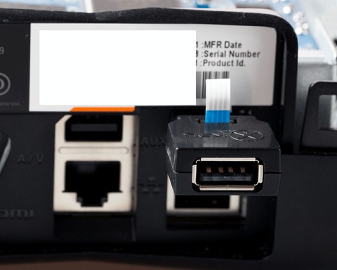 6= Connectez le câble USB noir de la carte mère du X360key au petit boitier noir. C'est cette partie de vous devrez déporter en dehors de la console, pour pouvoir la refermer après.