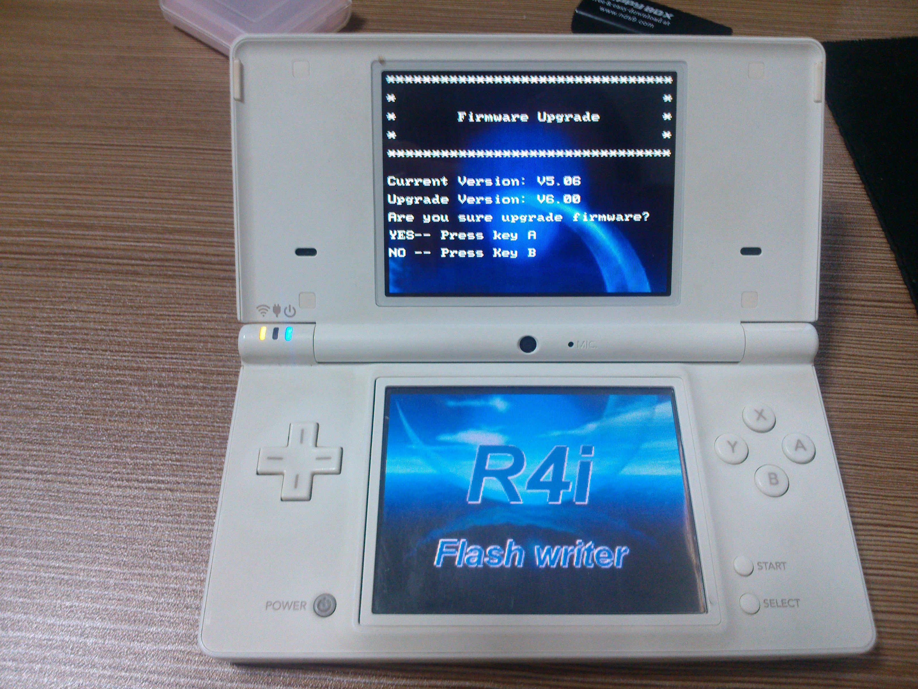 3-Insérez le linker r4i gold pro avec cette carte SD sur votre console, appuyez sur bouton A et puis cliquez »fwupdateAll_V7.0.0-13.. » pour faire la mise à jour, je vous prie de ne pas éteindre votre console et ne pas retirer votre linker R4i gold pro pendant cette période. Quand cette mise à jour est finie, vous pourrez jouer à ce jeu NDS.