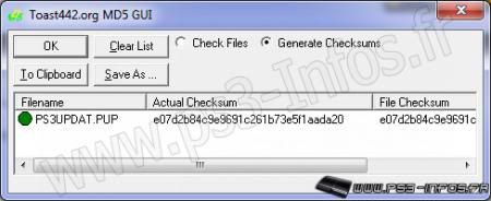 – Cliquez sur "Generate checksum" puis glissez et déposez le fichier PS3UPDAT.PUP sur cette fenêtre.
