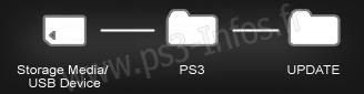 – Prenez votre périphérique externe USB, créez un dossier "PS3" à la racine. A l'intérieur, créez y un dossier "UPDATE".vvv