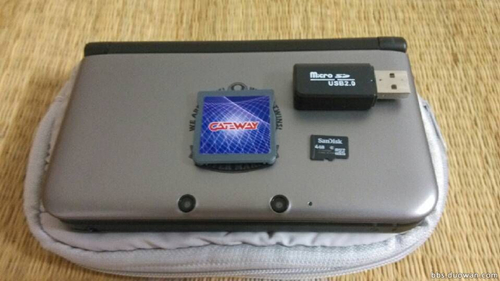(4)   Insérez la carte TF dans la carte bleu de GW, et puis insérez la précédente dans une console 3DS, une épée icône va afficher sur l’écran.
